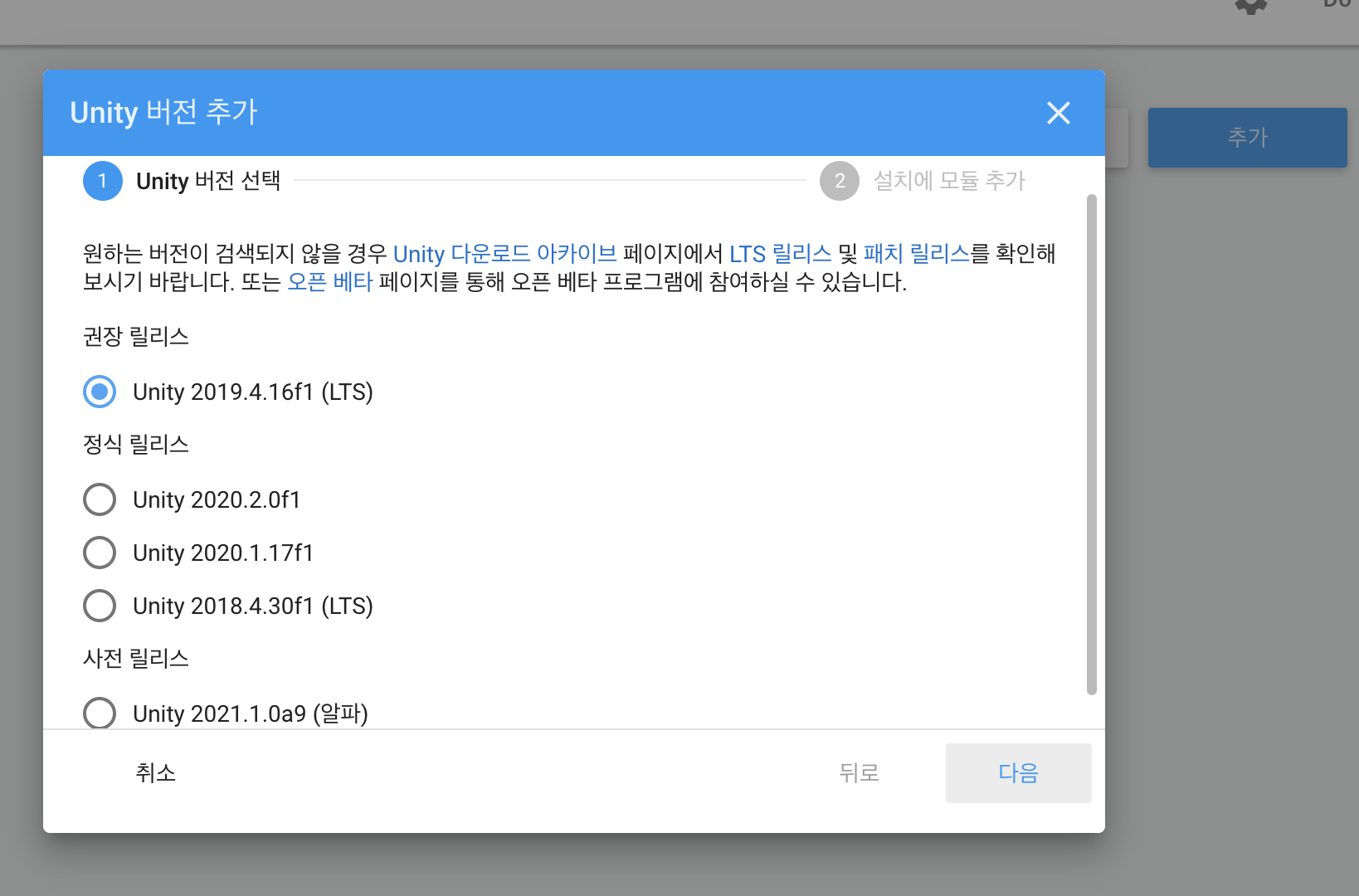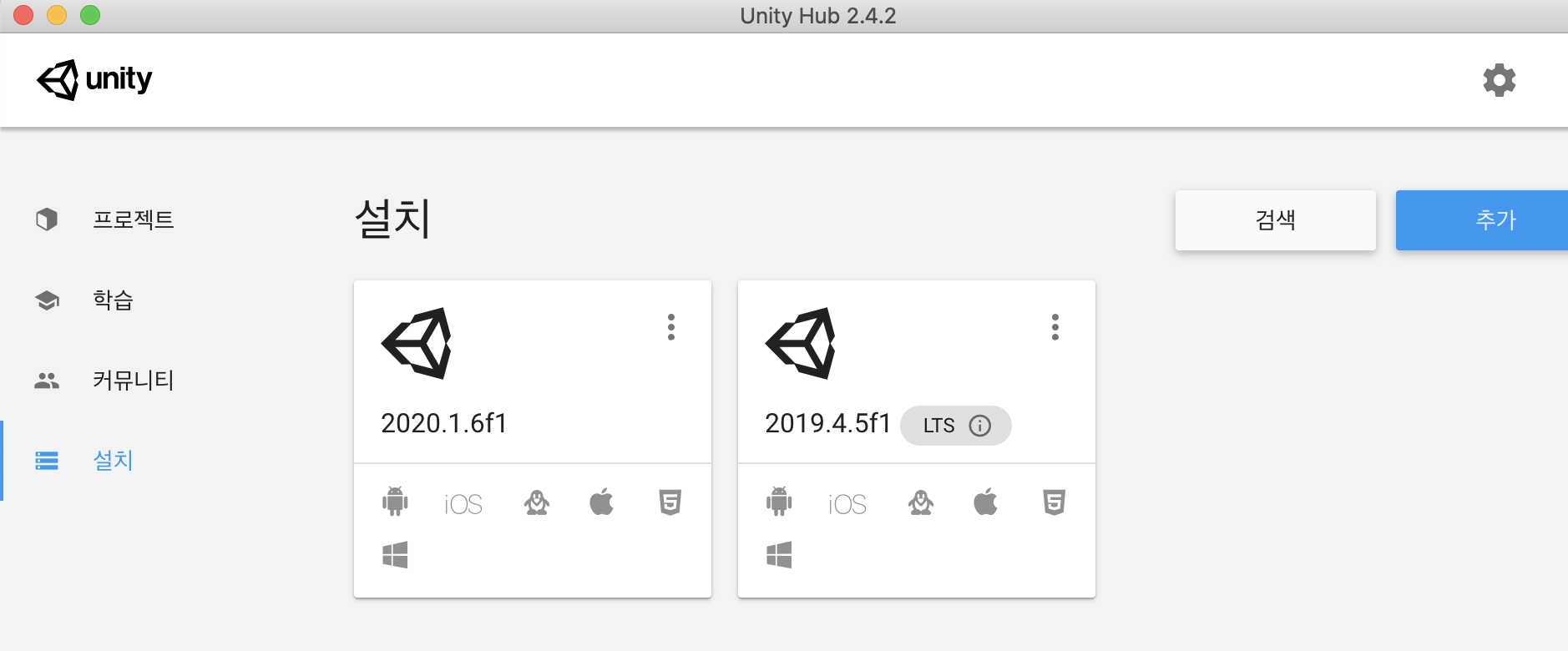 unity 자체를 설치 할때는 버전에 맞춰서 설치가 가능하다.