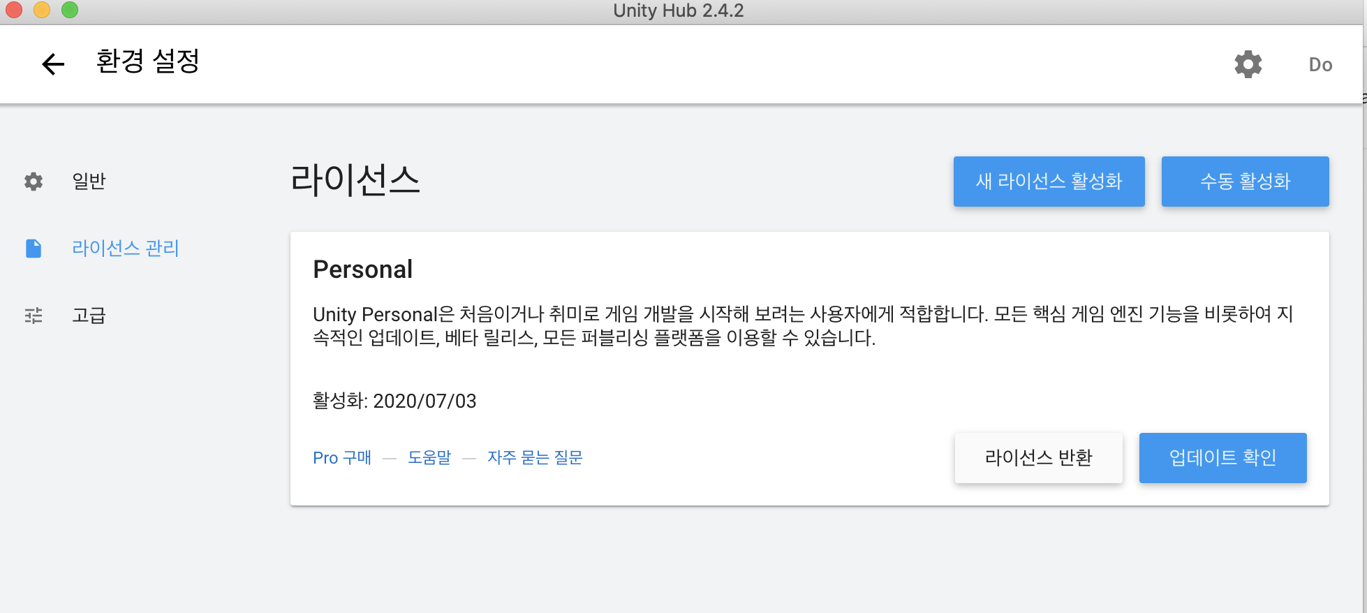 라이선스에 활성화를 시켜준 후