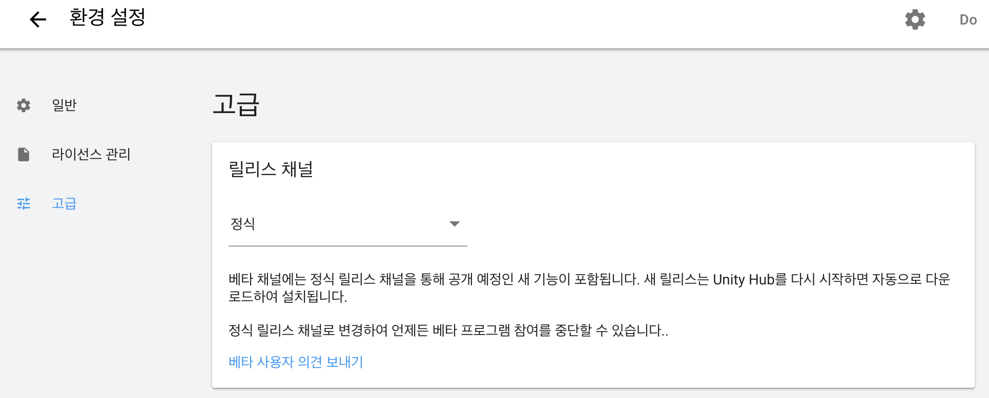 톱니바퀴 아이콘을 통해 설정에 들어가면
