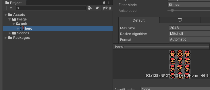 | Multiple | 이미지를 여러 Sprite로 나눌 수 있다. |