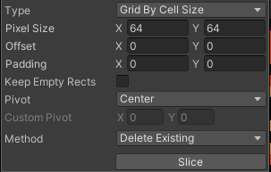 Sprite Mode를 Mutiple로 지정했기 때문에 Slice로 Sprite를 나눌 수있다.