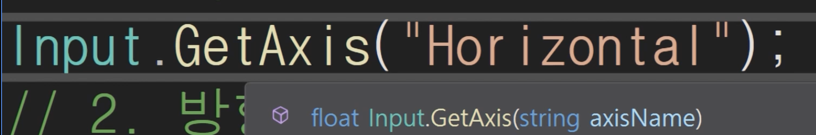 GetAxis함수는 해당 축을 읽어서 실수형 값을 반환 해준다.