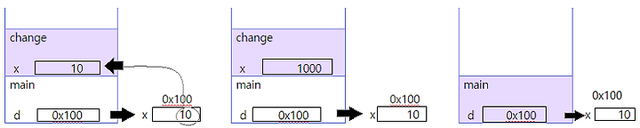 그래서 매개변수 d로 x의 값을 읽는 것과 변경하는 것이 모두 가능한 것이다.