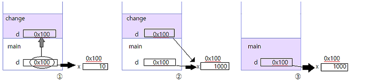 ② change메서드에서 매개변수 d로 x의 값을 1000으로 변경