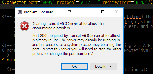 <Server port="8005" shutdown="SHUTDOWN">를 바꾸지 않았을때
