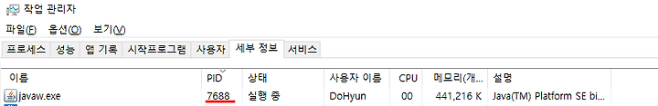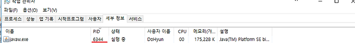4.작업관리자를 실행하여 (프로세스/세부정보) 탭 선택 (컨트롤+쉬프트+ESC)