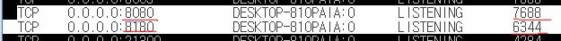 3. 이중 해당하는 포트번호(지금의 경우 8180)를 찾아 PID를 기억해둔다.