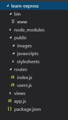 ( ... ) create : learn-express\views\layout.pug create : learn-express\app.js create : learn-express\package.json create : learn-express\bin\ create : learn-express\bin\www change directory: > cd learn-express install dependencies: > npm install run the app: > SET DEBUG=learn-express:* & npm start |